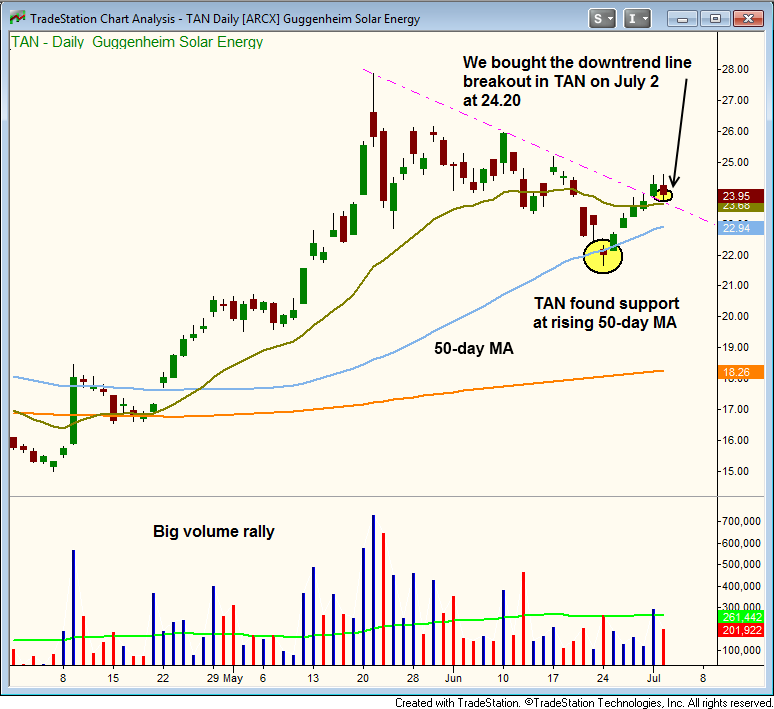 Below is a snapshot of the price action that followed our July 2 buy entry into $TAN: