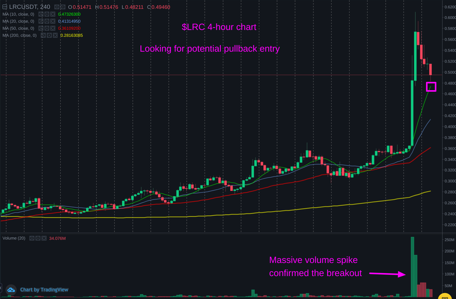 With such a strong move, $LRC may need a bit of time to digest its recent gains.