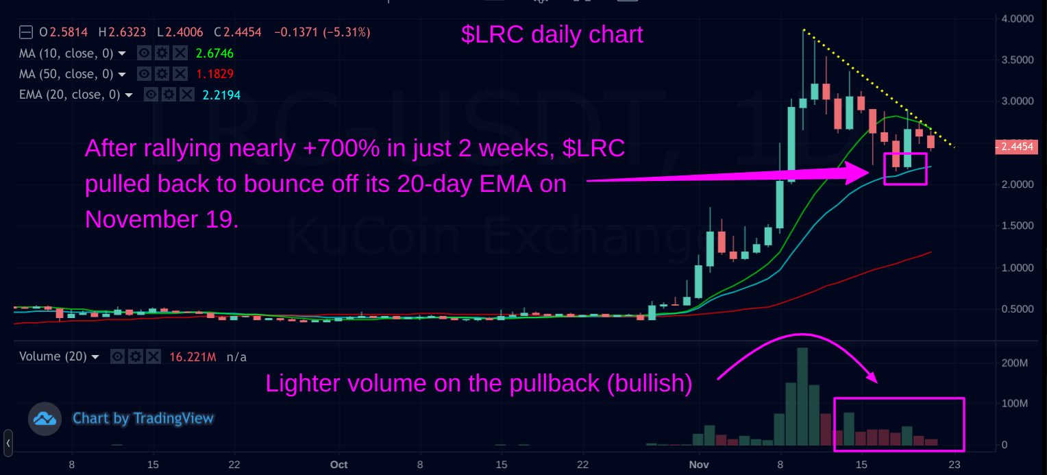 Without taking a shot on that pullback, we would risk missing out on another big rally higher in $LRC.