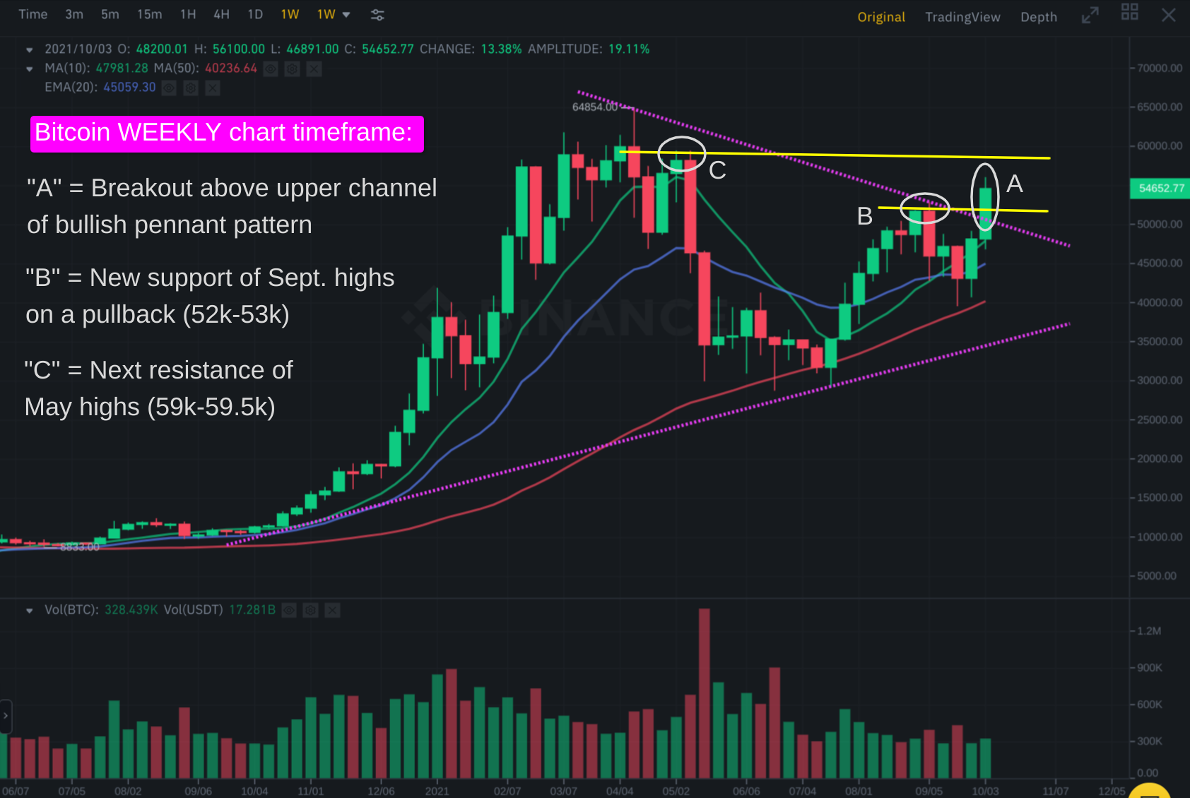 That October 5 breakout above the prior September highs was quite powerful because it caused $BTC to also break out from a bullish pennant pattern on the longer-term weekly chart timeframe.