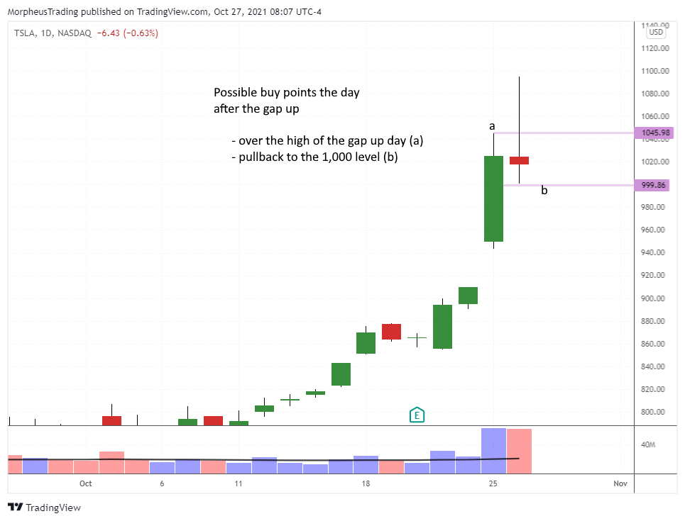 A move above the high of the gap up day is buyable because bullish momentum remains strong in these cases.