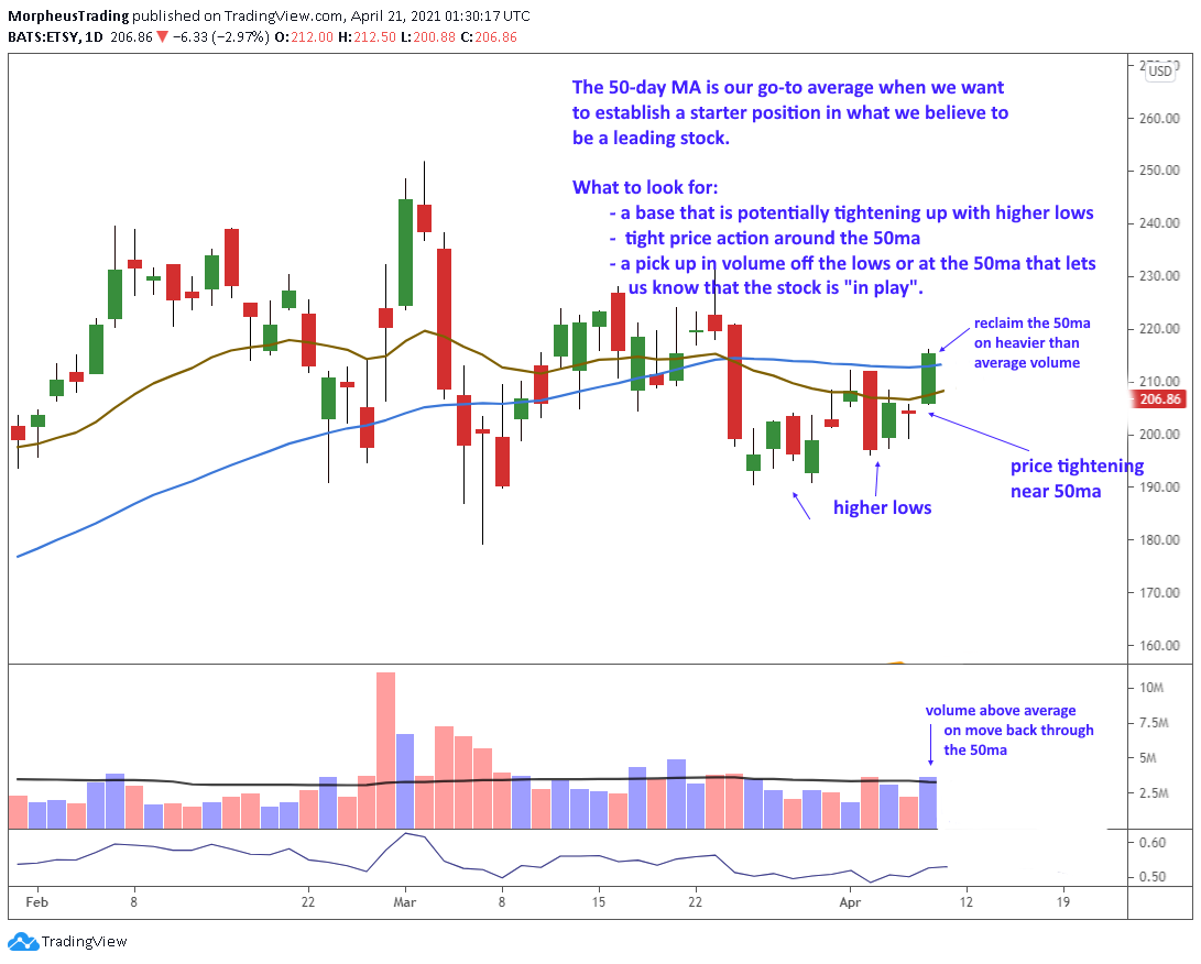 Now, $ETSY has become an excellent example of the type of low-risk entry point we look for when buying a quality stock that reclaims its 50-day moving average.