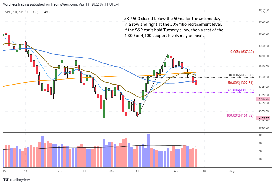 The S&P 500 also closed below the 50-day MA for the second day in a row and unless it can bounce back within the next day or two may be headed to the 4,300 area.