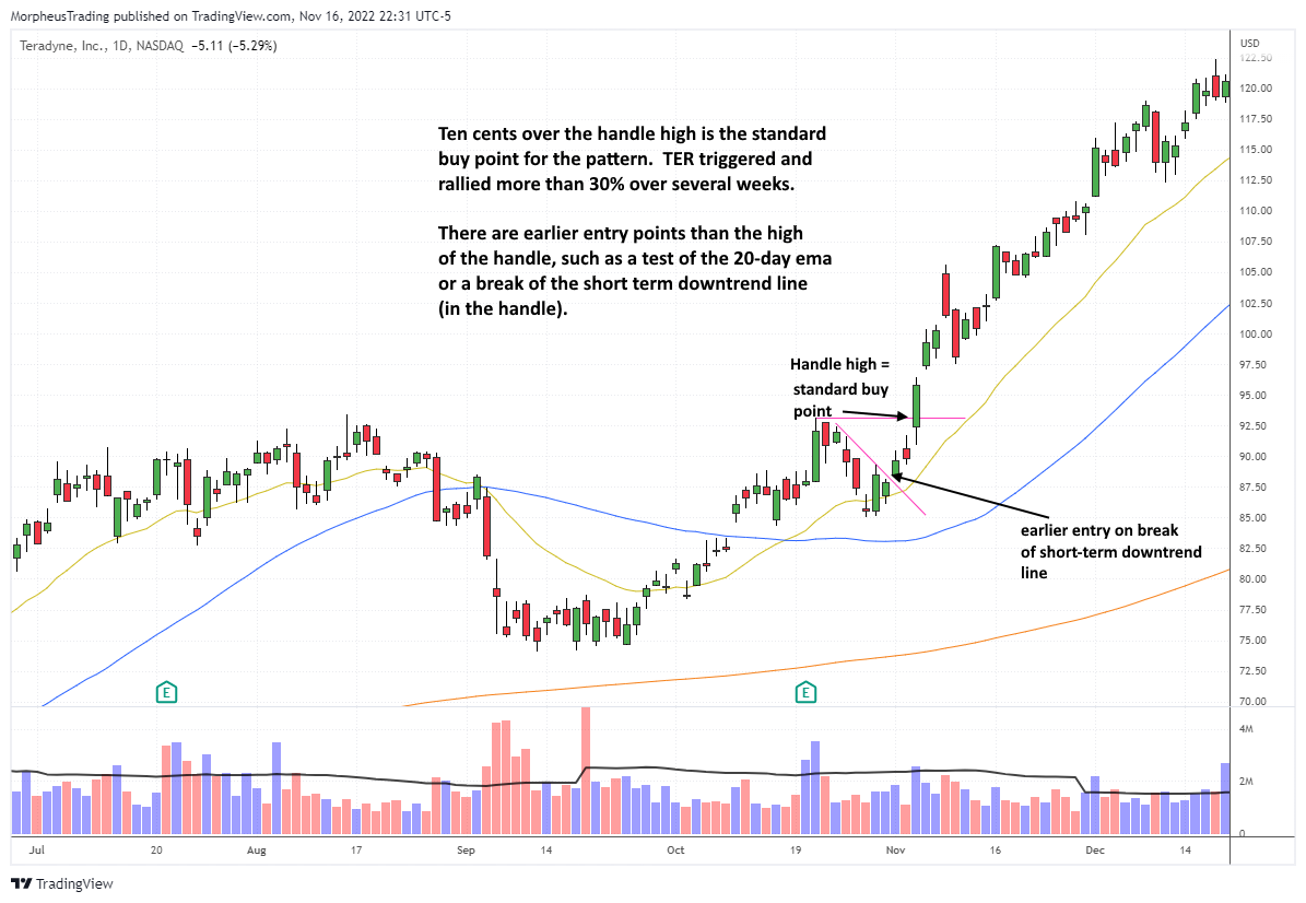 However, many swing traders prefer earlier entry points before the actual breakout above the handle.