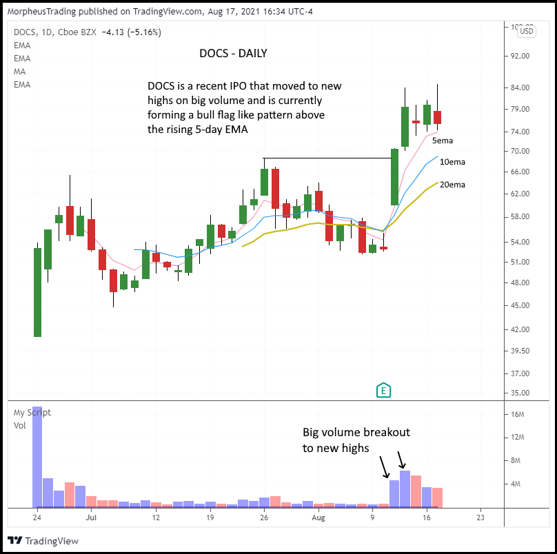 If buying $DOCS on the bull flag breakout, consider selling into strength after it breaks out to new highs.