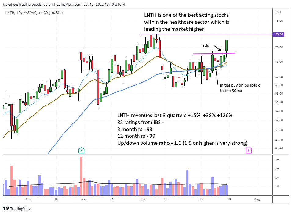 We initially bought $LNTH after it pulled back to 50-day MA support on July 11.